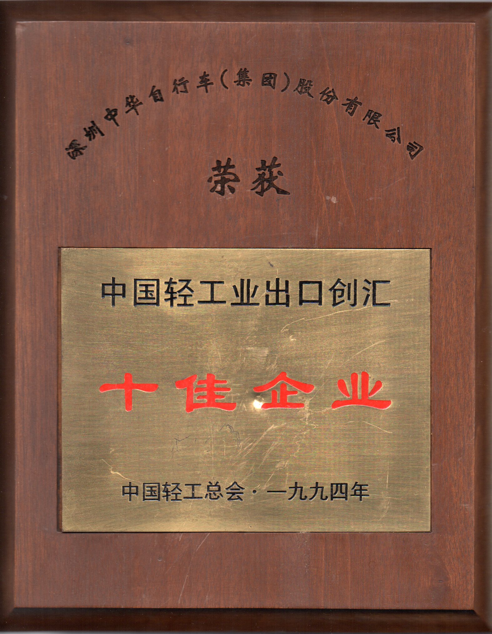 1994年,荣获 中国轻工总会 授予的“中国轻工业出口创汇十佳企业”